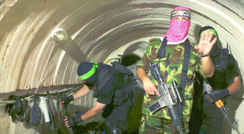 صورة وزعت أمس لعناصر من «القسام» داخل نفق في غزة خلال رحلة نظمتها حماس لصحافيين لدحض مزاعم إسرائيل بأنها دمرت جميع الأنفاق (رويترز)