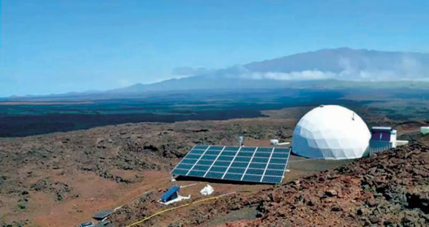 تمّ إنشاء «مشروع هاواي للاستكشاف الفضائي التناظري والمحاكاة» (HI - SEAS) في قبة بيضاء صغيرة على طول منحدر بركان كبير يعرف بـ«مونا لوا». وقد اعتادت هذه المنشأة أثناء عملها إيواء 6 أشخاص في وقت واحد وعلى مدار عام كامل. وكان هؤلاء يتناولون الوجبات المثلّجة والمجففة، ويستحمون خلال 30 ثانية فقط لضمان عدم هدر المياه، ويرتدون بِزّات فضائية في كلّ مرة يغادرون فيها القبّة.