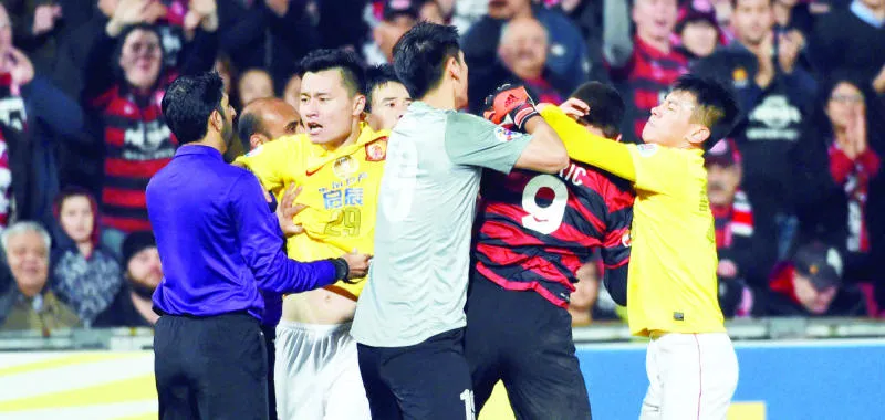 لاعبو سيدني الأسترالي وغوانغجو الصيني كانوا في قمة توترهم في مباراة أمس (أ.ف.ب)