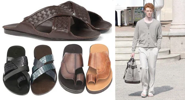 من عرض كورنيلياني - من بوتيغا فينيتا - «سانتوني - Santoni» الإيطالية طرحت مجموعة من الصنادل للرجل العربي بتصاميم كلاسيكية وخامات مترفة. فهي مصنوعة من جلود نادرة مثل جلود التماسيح والسحالي وبألوان غنية كالأسود والبني والأزرق