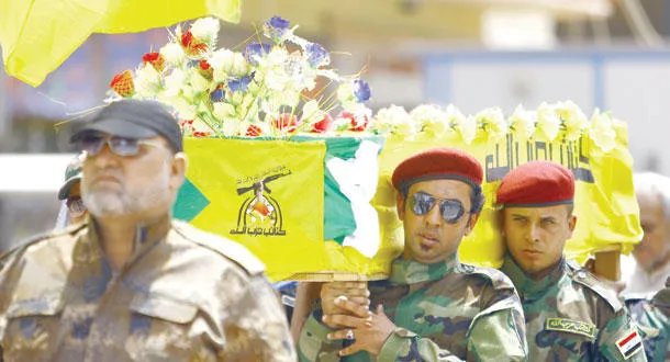 مراسم تشييع بمدينة النجف أمس لمقاتل من إحدى الميليشيات الشيعية قضى في اشتباكات بشمال العراق (أ.ف.ب)