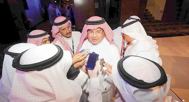 خالد الملحم مدير الخطوط السعودية أثناء حديثه للصحافيين في جدة أمس («الشرق الأوسط»)