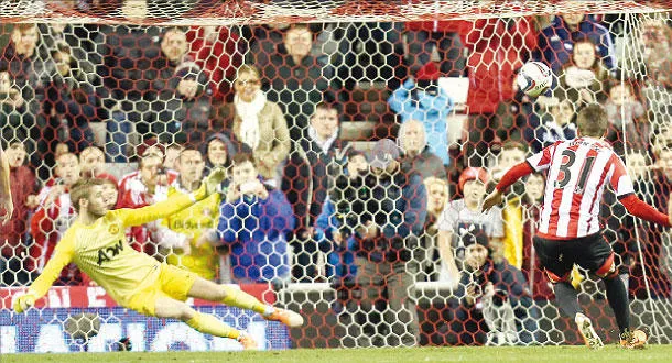 بوريني لاعب سندرلاند يسجل من ركلة الجزاء ليمنح فريقه الفوز على مانشستر يونايتد (أ.ب)