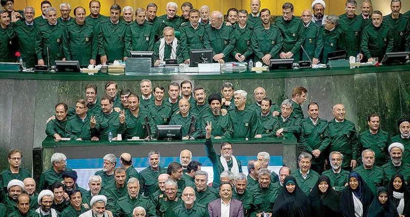 نواب البرلمان الإيراني يلتقطون صورة تذكارية بالزي الرسمي لـ«الحرس الثوري» غداة تصنيفه إرهابياً (فارس)