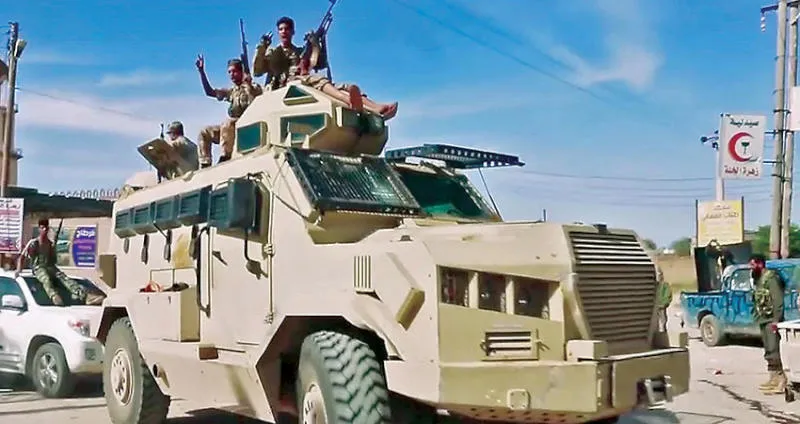 صورة وزعها إعلام «الجيش الوطني الليبي» لجنود تابعين للمشير خليفة حفتر جنوب طرابلس أمس (أ.ف.ب)