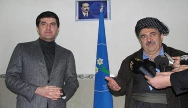 ارشيفية لمحمد الحاج محمود سكرتير عام الحزب الاشتراكي (يمين) و بارزاني