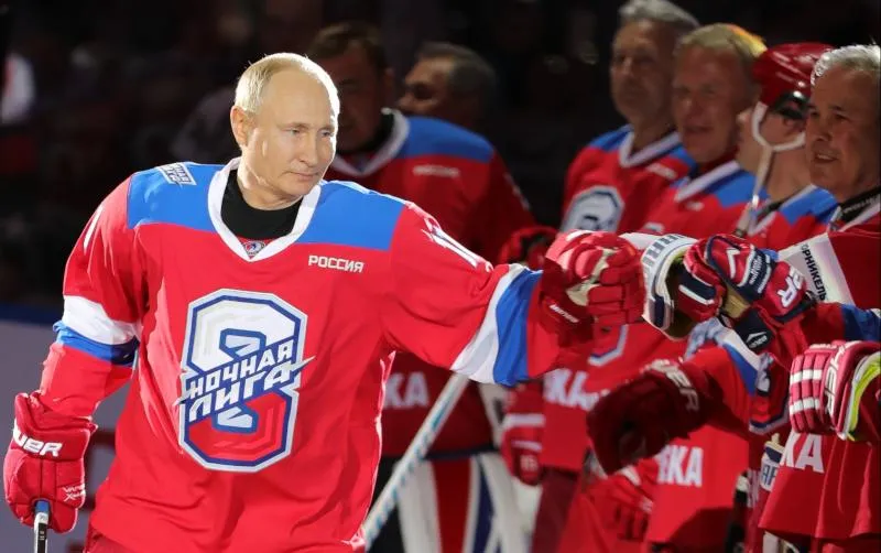 سجل الرئيس الروسي فلاديمير بوتين، ثمانية أهداف على الأقل أثناء لعب مباراة في هوكي الجليد مع لاعبين سابقين في دوري الهوكي الوطني في مدينة سوتشي، قبل أن يسقط على وجهه، بينما كان يلوح للجماهير بعلامة النصر بعد المباراة.