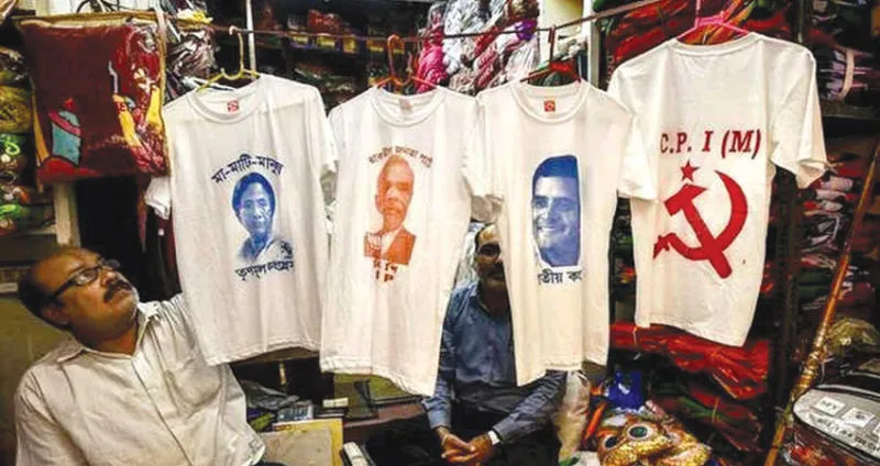 شعارات وصور زعماء سياسيين هنود مرسومة على الملابس خلال فترة الحملات الانتخابية