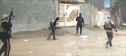 مسلحون ينتشرون في أحد شوارع الفلوجة أول من أمس (أ.ب)
