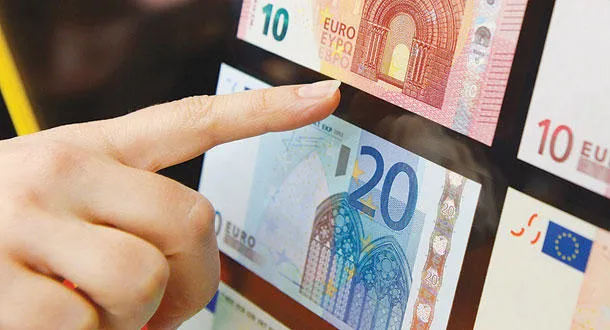 العملة النقدية الورقية الجديدة من فئة 10 يوروات خلال العرض الذي قدمه البنك الوطني النمساوي في فيينا أمس. (ا.ب)