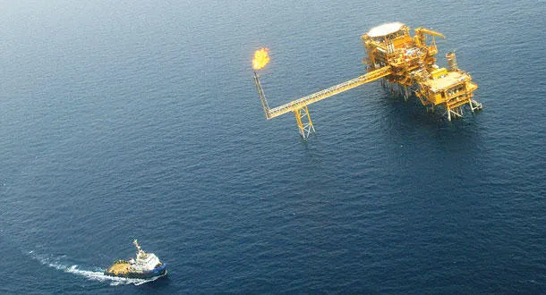 لقطة جوية لمنصة حقل بلال النفطي الإيراني على الحدود الإيرانية القطرية (أ.ف.ب)