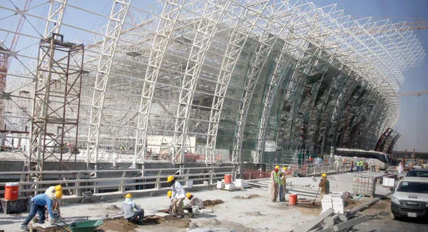 جانب من أعمال الإنشاء والبناء في مشروع مطار الملك عبد العزيز الدولي الجديد بجدة (تصوير: فهد الأحمري)