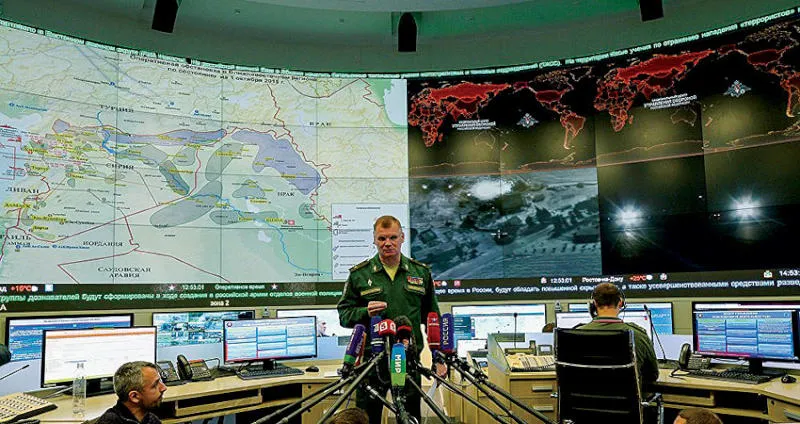 الجنرال إيغر كوناشينكوف الناطق الرسمي باسم وزارة الدفاع الروسية في إيجاز حول سوريا أبريل 2018 (الشرق الأوسط)