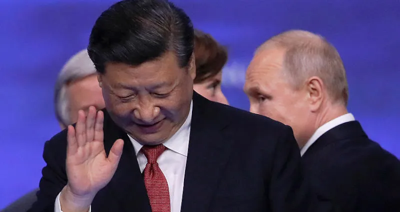 الرئيس الصيني شي وخلفه نظيره الروسي بوتين (رويترز)
