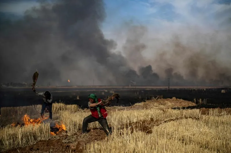 وبعد سنوات الجفاف والحرب، تترقب سوريا حصاداً استثنائياً، بالأخص في الشمال الشرقي، بفعل هطول أمطار غزيرة في بداية العام. غير أنّ هذا الحصاد تهدده النيران التي تشتعل في عدد من الأمكنة منذ أسابيع.