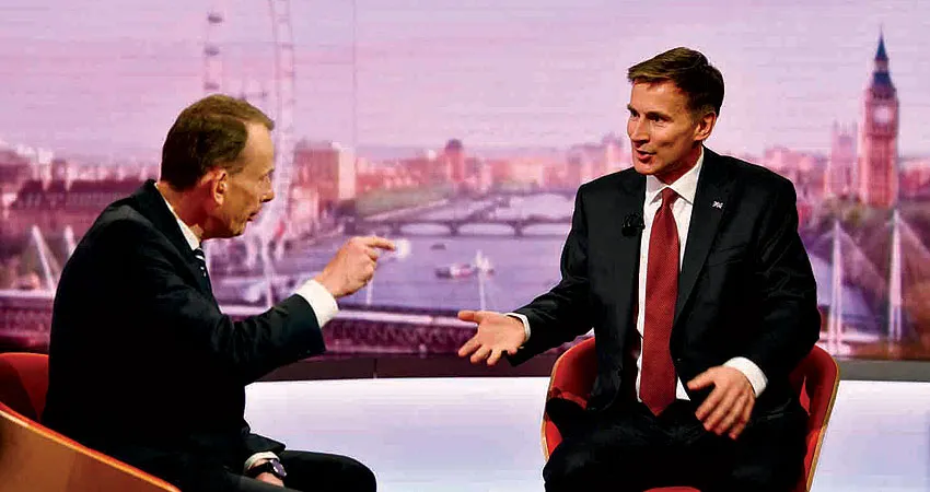 وزير الخارجية البريطاني جيريمي هانت خلال مقابلته مع «بي بي سي» أمس (رويترز)