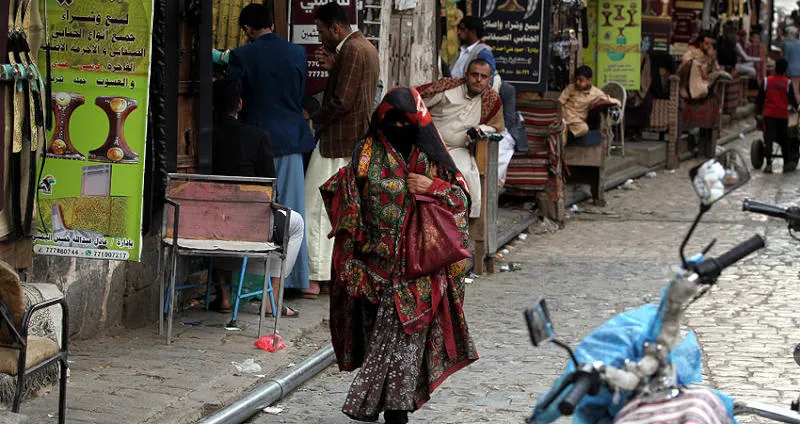 يمنية في إحدى أسواق العاصمة صنعاء أول من أمس (إ.ب.أ)