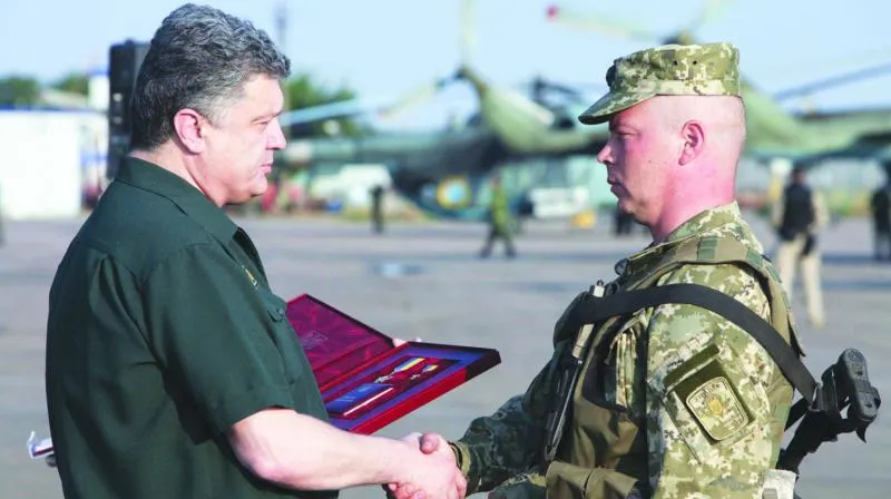 ورأى الرئيس الأوكراني أمس في ماريوبول أنه من المستحيل الانتصار في النزاع الجاري في شرق أوكرانيا بين الجيش والمتمردين الموالين لروسيا «عبر السبل العسكرية فقط»، ودعا إلى سحب القوات الروسية. وقال بوروشينكو خلال مؤتمر صحافي بالإنجليزية بعيد وصوله إلى مرفأ ماريوبول التي تتعرض لهجمات متمردين منذ عدة أيام: «من المستحيل الانتصار في النزاع عبر الوسائل العسكرية فقط. كلما زدنا الضغط أصبح هناك قوات روسية على أراضينا».