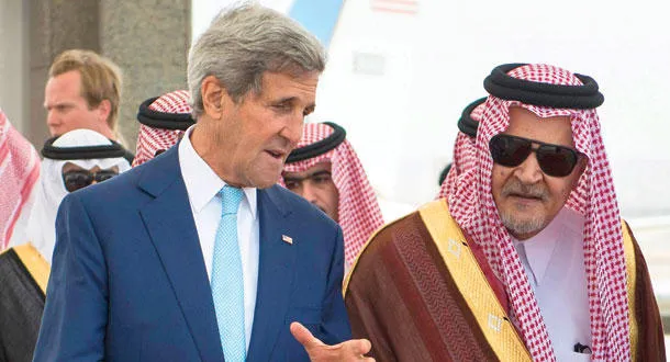 الأمير سعود الفيصل لدى استقباله كيري أمس (رويترز)