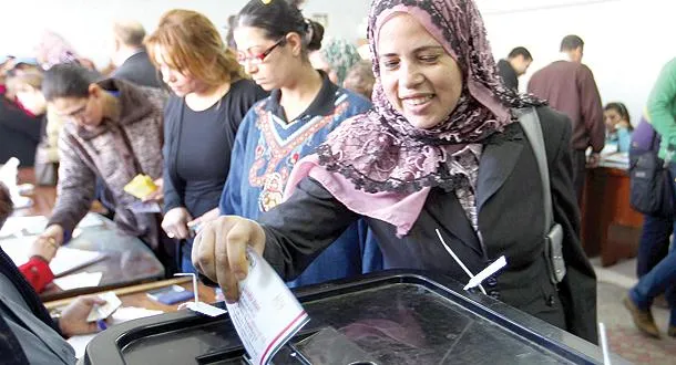 مصريات خلال إدلائهن بأصواتهن أمس في اليوم الأخير للاستفتاء على الدستور الجديد في إحدى اللجان شرق القاهرة (إ.ب.أ)