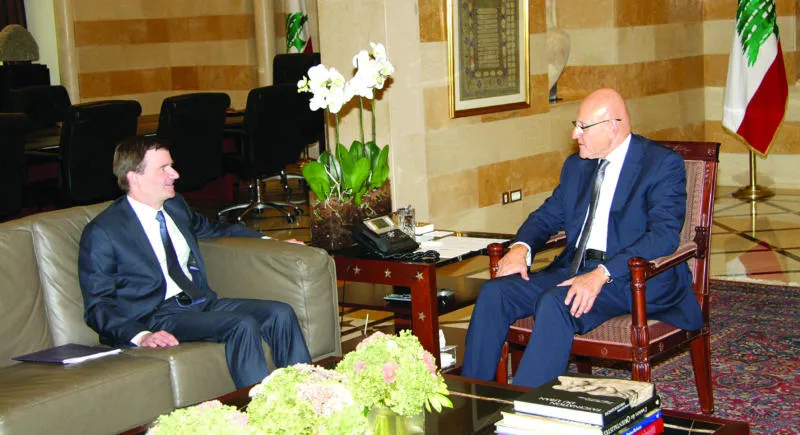 رئيس الحكومة اللبنانية تمام سلام لدى لقائه السفير الاميركي في بيروت أمس (دالاتي ونهرا)