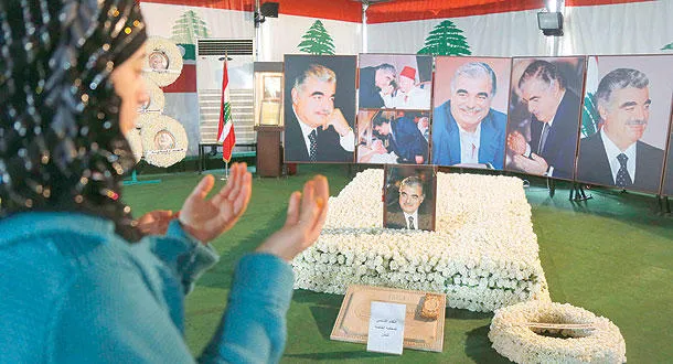لبنانية تقرأ الفاتحة عند قبر الراحل رفيق الحريري في بيروت أمس (رويترز)
