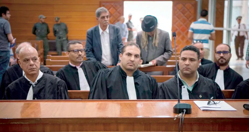 محامون ينتظرون انطلاق المحاكمة في سلا أمس (أ.ف.ب)