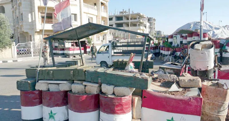 نقطة تفتيش في مدينة درعا جنوب سوريا عام 2018 (إب)