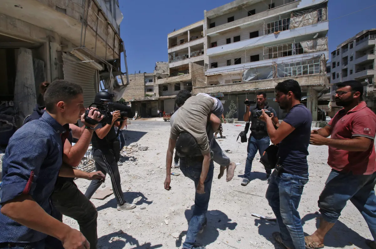 ووجد مسعفون من منظمة الخوذ البيضاء طفلا ميتا يغطيه الغبار وتكسو الدماء وجهه، تحت الأنقاض، بحسب وكالة الصحافة الفرنسية. كما حمل أحد المسعفين على كتفه شابا وجد ميتا في أحد المباني التي تعرضت للقصف. ونقل جثمانه الى المقعد الخلفي لشاحنة صغيرة.