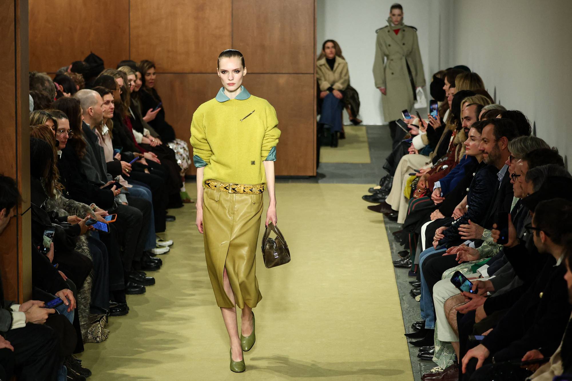 * قد لا يكون الجينز قويا في البنطلونات، لكنه كان مميزا في الجاكيتات، وخصوصا في عرض «بيربيري برورسم»، حيث جاءت تصاميمها بأطوال مختلفة ومزينة بقطع من الجلد اللماع بألوان ساطعة. ظهرت أيضا في عرض هنري هولاند بشكل شبابي أكثر.