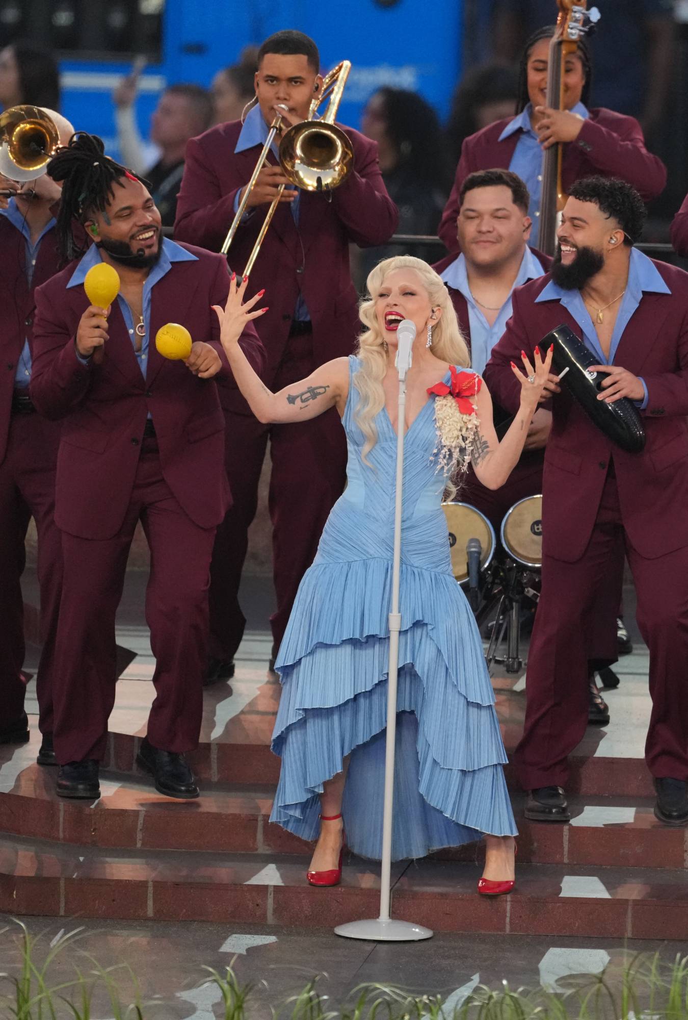 وبالفعل اتخذ هذه الخطوة من الأحذية المنخفضة، التي تميزت بأحزمة تلتف حول الساق ظهرت في أول العرض، إلى باقي التصاميم. كالعادة كانت الغلبة للفساتين على حساب باقي القطع المنفصلة، وكالعادة أيضا جاءت غنية بالألوان والتطريزات والرسومات التي غطت معظمها وجاء بضعها بأبعاد ثلاثية.