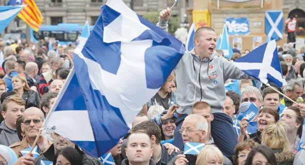 تجمع أخير لمؤيدين للانفصال في غلاسكو أمس عشية الاستفتاء التاريخي (أ.ف.ب)