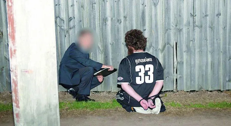 أحد الأستراليين المشتبه بهم في سيدني أمس قبل ترحيله إلى مركز التحقيقات (رويترز)