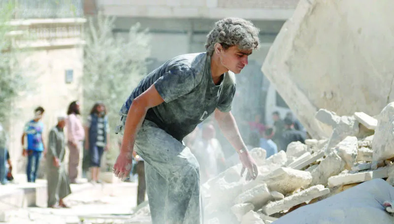 سوري يبحث بين الركام عن ناجين بعد قصف كثيف لقوات النظام السوري على شرق إدلب أمس (رويترز)