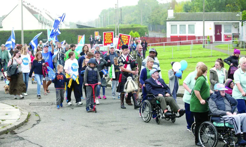 اسكوتلنديون مؤيدون للانفصال نظموا مسيرة سموها «الخطوة القصيرة باتجاه الحرية» بمناسبة الاستفتاء في أدنبرة أمس (رويترز)