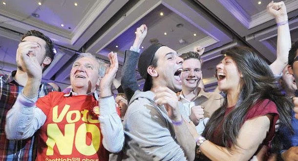 تنفست بريطانيا، ومعها أوروبا وحليفها الرئيس الولايات المتحدة الأميركية، الصعداء أمس إثر رفض الاسكوتلنديين الاستقلال عن المملكة المتحدة في الاستفتاء التاريخي الذي شاركوا فيه بكثافة أول من أمس. فأقل من نصف مليون صوت، شكلت الفارق بين الانفصاليين والوحدويين في الاستفتاء، كانت كافية لحسم النتيجة في الساعات الأولى من صباح أمس وأوقفت إمكانية تفكك المملكة المتحدة بعد أكثر من ثلاثة قرون من الوحدة.