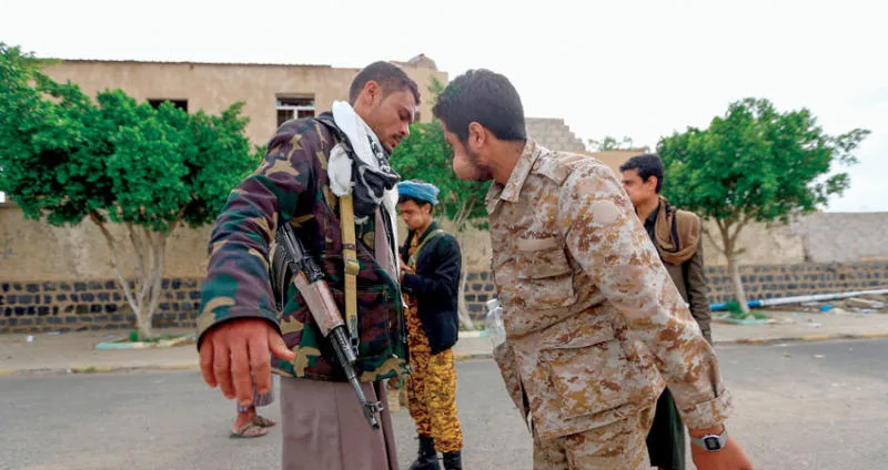 عنصر أمني حوثي في تفتيش يسبق تجمعاً مسلحاً في صنعاء (أ.ف.ب)