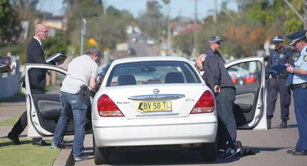 الشرطة الأسترالية تفتش إحدى السيارات في منطقة جليفورد في ضواحي سيدني بعد قيام مئات من رجال الشرطة بعملية واسعة لمكافحة الإرهاب أمس (أ.ب)