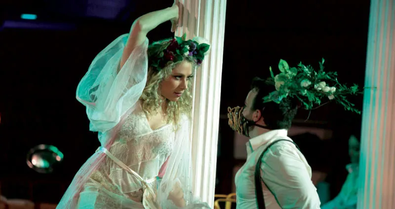 ويمكنك خلال العرض إمعان النظر في مفهوم الخير والشر والآخرة مع الاستمتاع في الوقت نفسه بتناول أطباق المحار اللذيذ وصدور البط وكبد الوز بالمشمش.