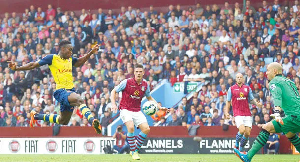 * فوز أمس هو الانتصار الثاني لآرسنال هذا الموسم والأول بعد 3 تعادلات متتالية فرفع رصيده إلى 9 نقاط وارتقى إلى المركز الرابع، فيما مني أستون فيلا، أحد مفاجآت الموسم الجديد، بخسارته الأولى بعد 3 انتصارات وتعادل واحد وفشل في انتزاع الصدارة ولو مؤقتا بعدما تجمد رصيده عند 10 نقاط في المركز الثاني بفارق نقطتين خلف تشيلسي المتصدر والذي تنتظره مهمة صعبة اليوم في ختام المرحلة أمام مضيفه مانشستر سيتي حامل اللقب. وحسم النادي اللندني المباراة في شوطها الأول بثلاثية في 6 دقائق افتتحها الدولي الألماني مسعود أوزيل إثر تلقيه كرة على طبق من ذهب من داني ويلبيك فانفرد بالحارس الأميركي براد غوزان في الدقيقة 32. ورد أوزيل التحية لويلبيك عندما مرر له كرة عرضية أمام المرمى فتابعها بيمناه قوية داخل مرمى غوزان مسجلا الهدف الثاني للنادي اللندني وباكورة أهدافه معه منذ انتقاله إلى صفوفه قادما من مانشستر يونايتد في اليوم الأخير من فترة الانتقالات الصيفية في الدقيقة 34. وسجل المدافع الفرنسي علي سيسوكو الثالث بالخطأ في مرمى فريقه عندما حاول إبعاد تسديدة قوية للمدافع كيران غيبس في الدقيقة 36.