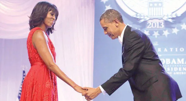 باراك أوباما ينحني لزوجته ميشيل أثناء الحفل الراقص الذي أقيم بمناسبة إعادة انتخابه (أ.ب)