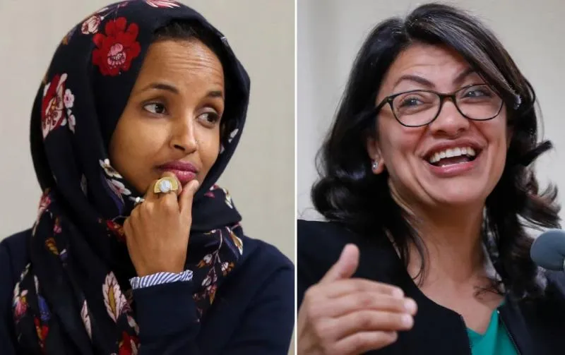 النائبتان الأميركيتان رشيدة طليب وإلهان عمر (أ.ب)