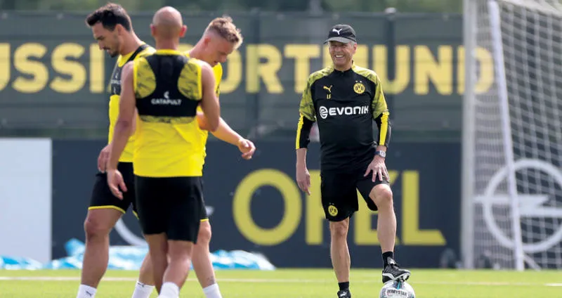 فافر مدرب دورتموند يراقب لاعبيه في التدريبات قبل مواجهة كولون اليوم