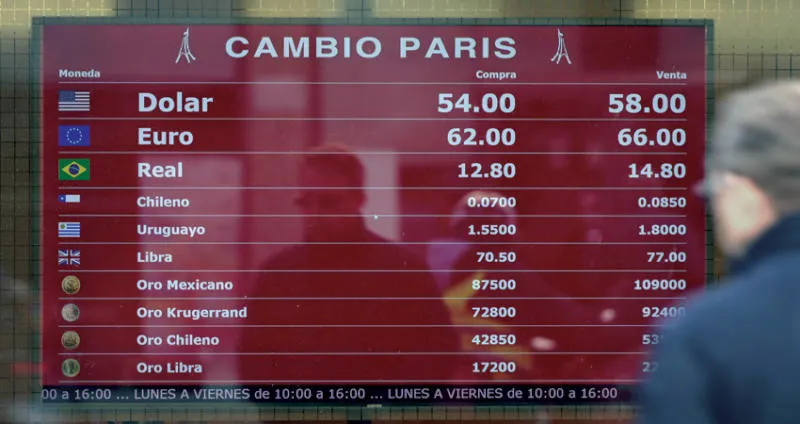 أسعار صرف البيزو الأرجنتيني في الحي المالي ببوينس آيريس (أ.ف.ب)