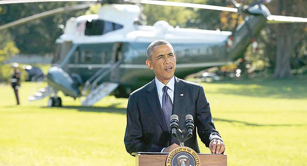 باراك أوباما لدى تصريحاته في البيت الأبيض حول الغارات الجوية لأميركا وحلفائها على تنظيم داعش في سوريا أمس (إ.ب.أ)