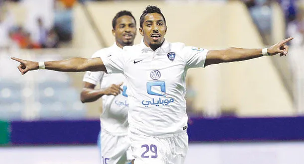 سالم الدوسري لاعب الهلال يحتفل بهدفه الأول في الفتح (تصوير: عيسى الدبيسي)