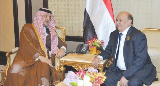الأمير سعود الفيصل خلال لقاء سابق مع الرئيس اليمني عبد ربه منصور هادي (واس)