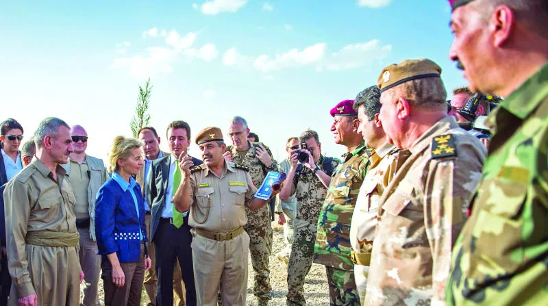 وحول المساعدات الألمانية لقوات البيشمركة، قالت وزيرة الدفاع الألمانية «قوات البيشمركة في مواجهة مع (داعش) على طول جبهة تبلغ مسافتها نحو 1050 كم. وزير البيشمركة تحدث لنا عن بطولات قوات البيشمركة في إدارة الجبهة، لكنه أكد لنا أن هذه المواجهة صعبة لأن قوات البيشمركة تحتاج إلى أسلحة لتواجه السلاح المتطور الذي يملكه (داعش)». وأضافت أن بلادها ستقدم الدعم والمساعدة إلى قوات البيشمركة بالسلاح والتدريب العسكري على مدى البعيد، وقد تلقينا طلبات بذلك من قبل الإقليم، من أجل القضاء على (داعش) نهائيا». وشملت الوجبة الأولى من المساعدات الألمانية التي وصلت إلى الإقليم أجهزة لكشف المتفجرات وإبطالها، خاصة أن «داعش» يلغم كل المناطق التي ينسحب منها، لذا ستستفيد البيشمركة من هذه الأجهزة في إبطال هذه المتفجرات وتمشيط المناطق المحررة، وبالتالي عودة السكان إليها بسرعة.