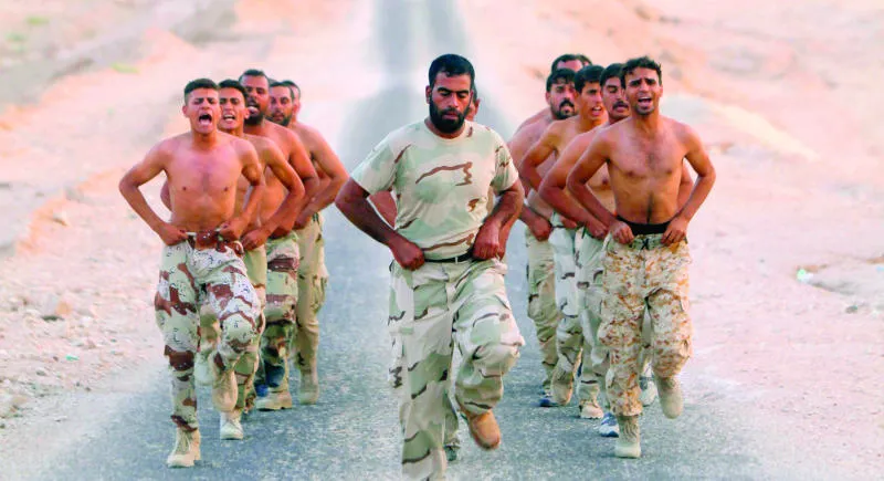 متطوعون انضموا إلى الجيش العراقي يتدربون في منطقة صحراوية بين كربلاء والنجف جنوب بغداد أمس (رويترز)