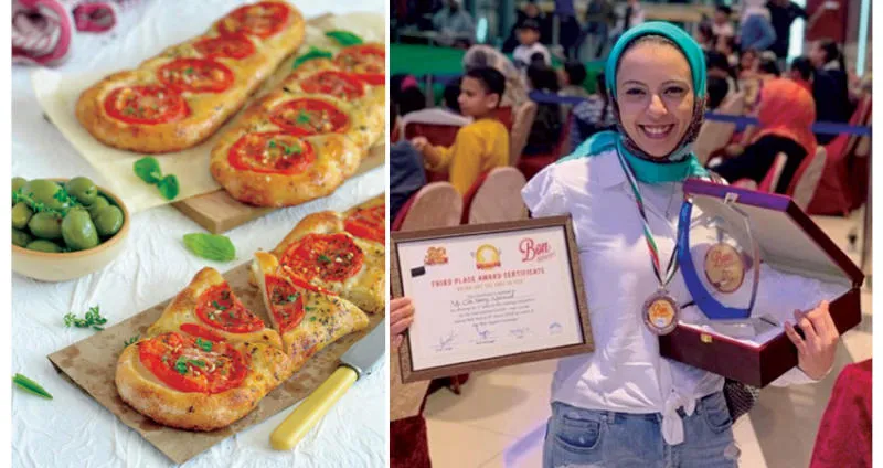علا حسني مع جائزتها - من أصناف المعجنات التي تبدع علا في تحضيرها